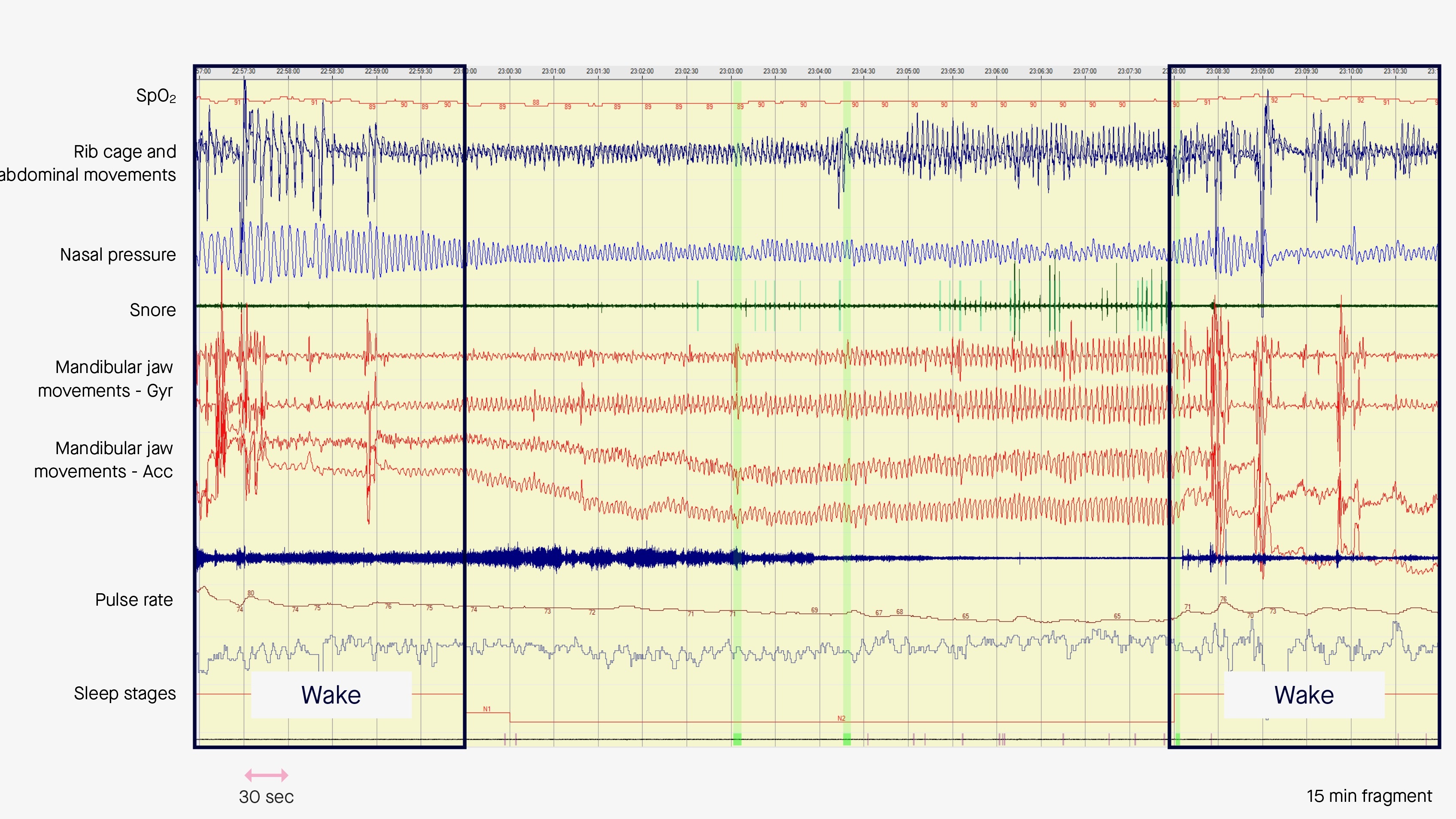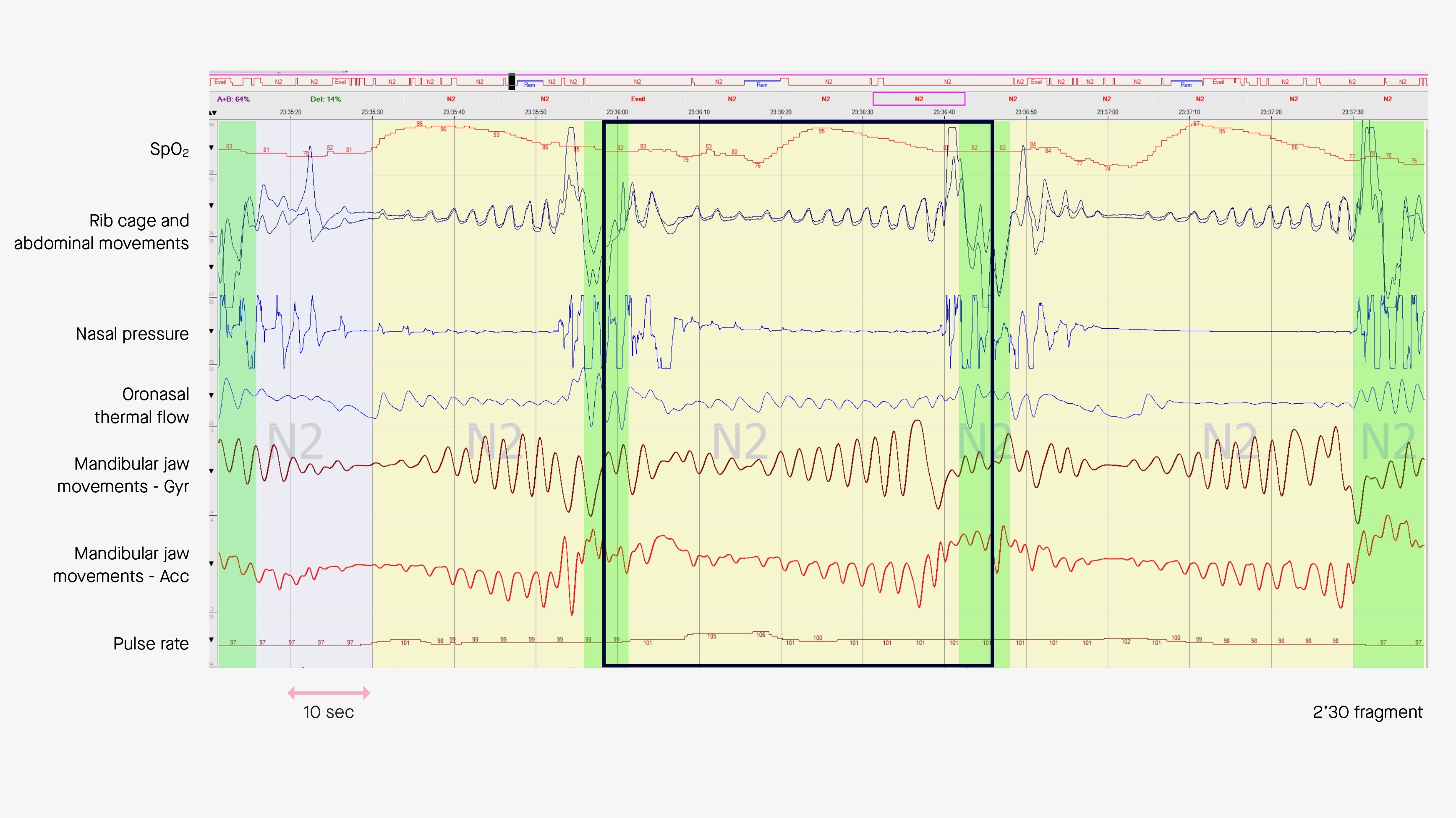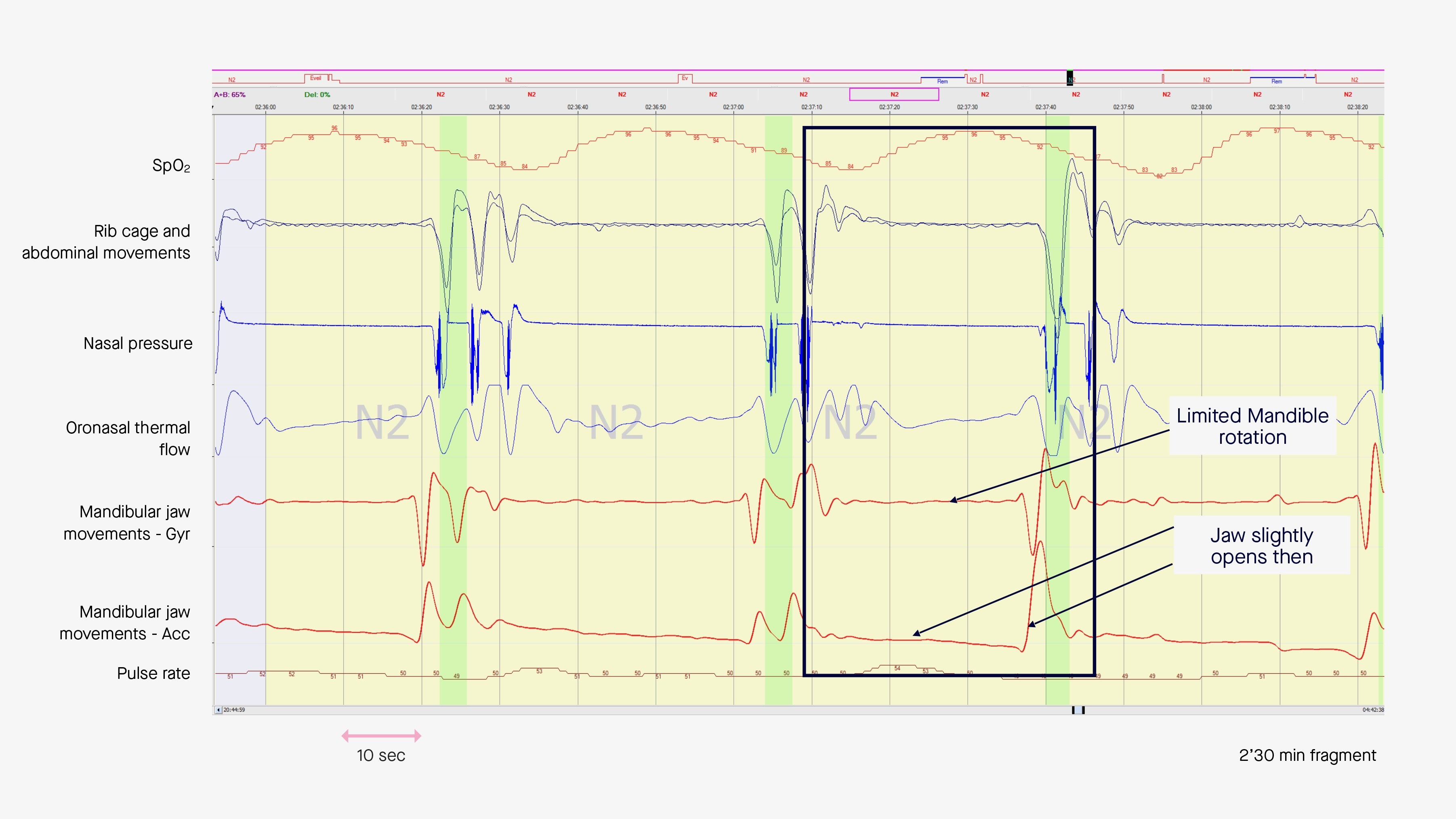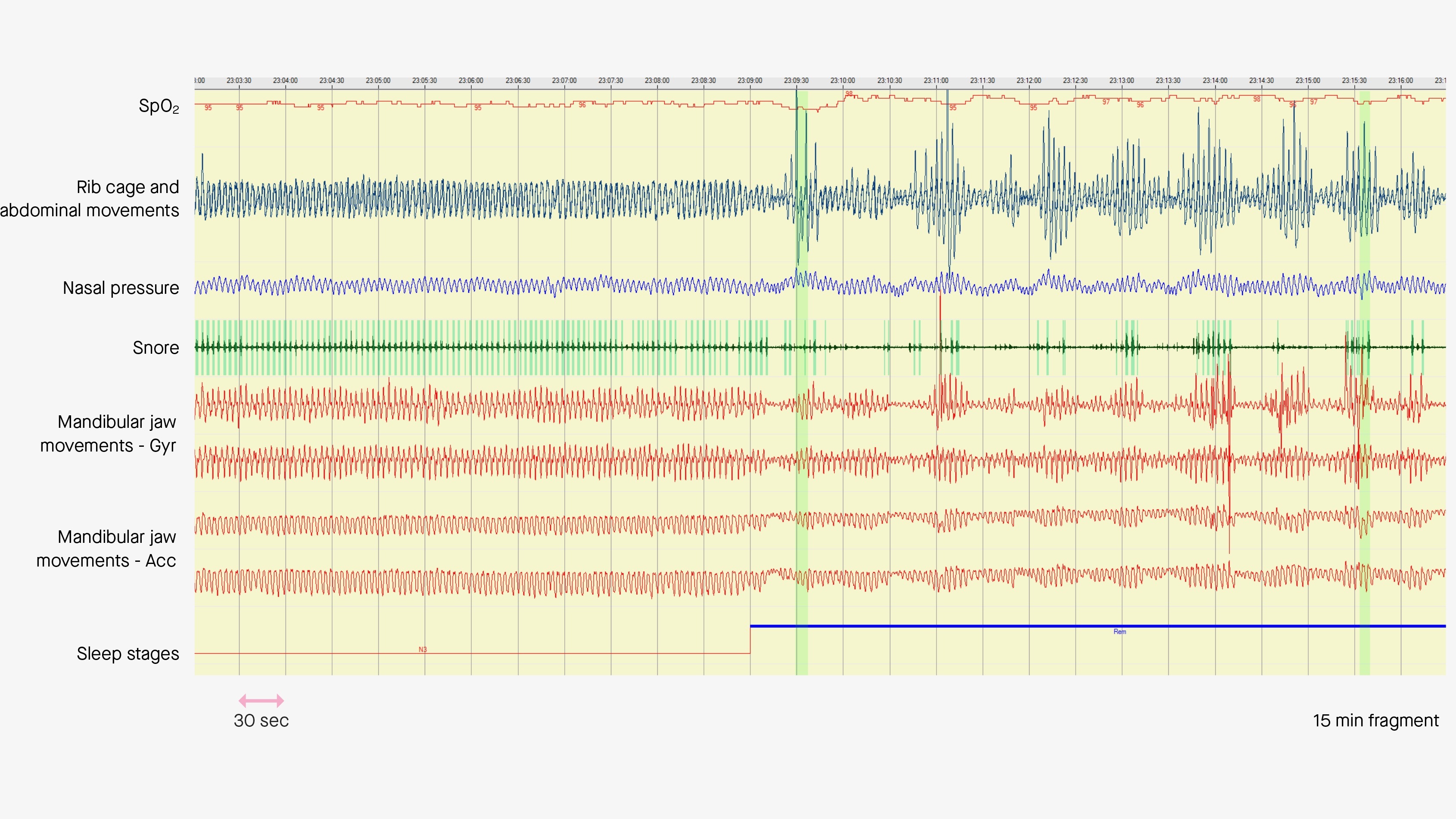 In other words, monitoring the amplitude of MJM during sleep informs about the level of central drive required to ensure respiration, i.e. the level of respiratory effort.